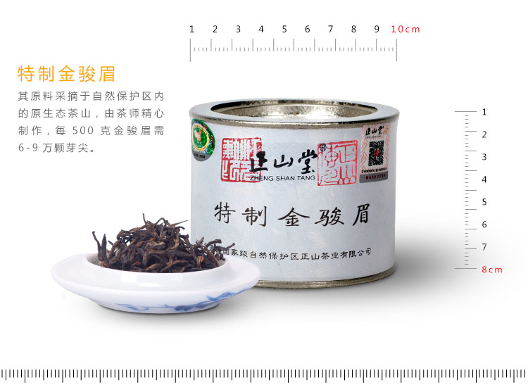 您可以在罐侧看到正山堂-金骏眉的详细产品信息,原产地保证,正宗武夷山桐木关出产。我们的保质期有36个月哦,好茶耐存,历久弥香!还有我们明晰齐全的公司联系方式,若您有任何疑问或建议,欢迎随时联系我们。