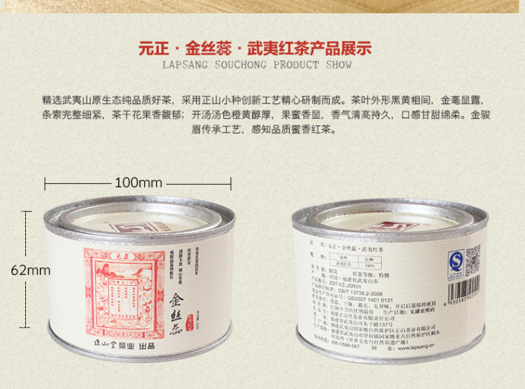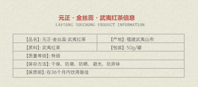正山堂 武夷山桐木关正山小种红茶元正金丝蕊50g