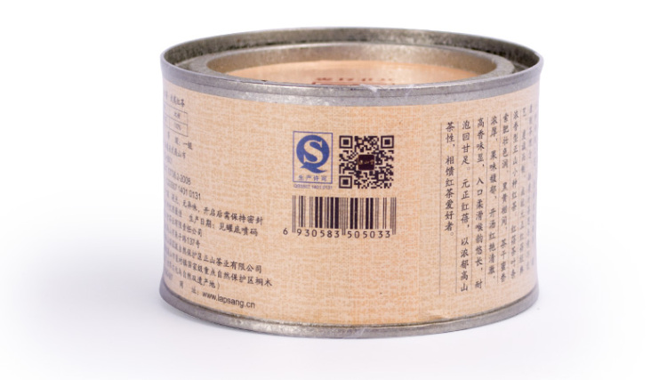 优质金属铝罐承装,内部高档密封膜密封处理,经典之上的精益求精,让茶保存更久,品质始终如新。罐面有QS质量体系认证与正山堂防伪标签,品质保证,让您放心。