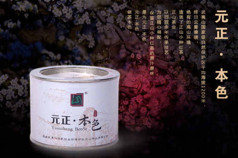 武夷山自然保护区平均海拔1200米, 终日云雾缭绕, 绝有的高山环境, 造就了正山小种红茶的品质。 正山茶业, 以四百余年传承技艺, 为您精心调配, 保留正山小种红茶的原汁原味原生态, 是为元正·本色。 元正·本色, 做茶本色。