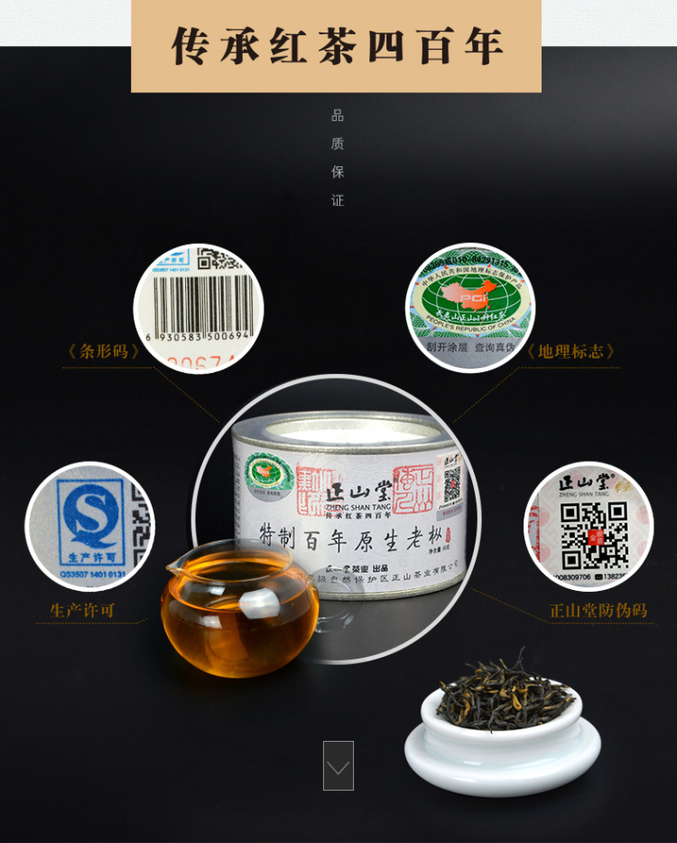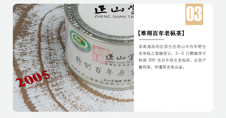 正山堂 武夷山桐木关正山小种红茶茶叶百年老枞50克