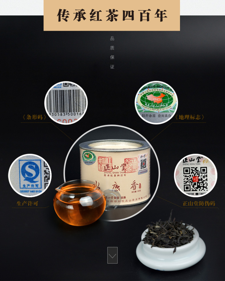 正山堂 武夷山桐木关正山小种红茶水底香100克