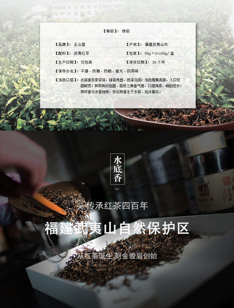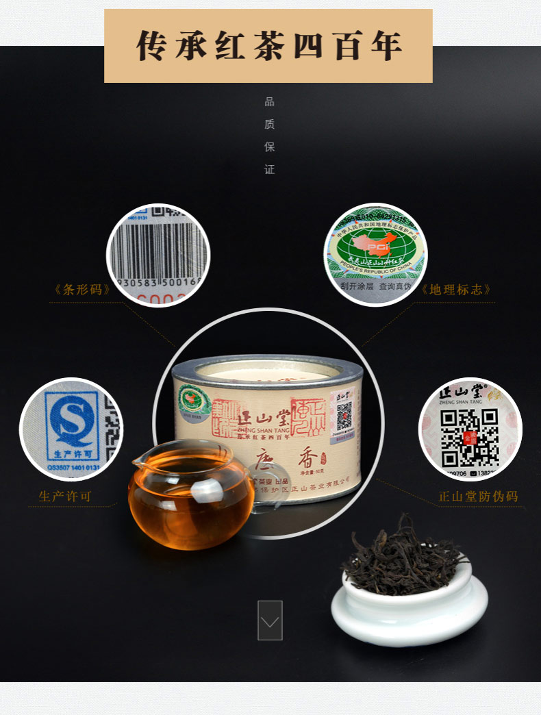 正山堂 武夷山桐木关正山小种红茶水底香简约风尚礼盒100克