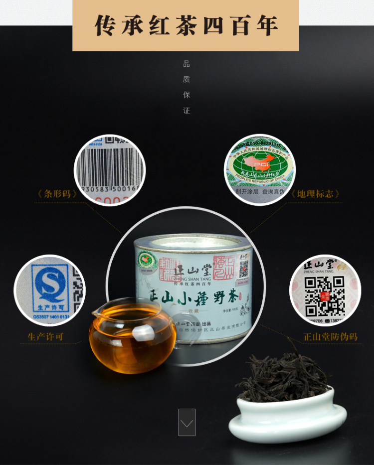 正山堂 武夷山桐木关高海拔正山小种红茶野茶100克