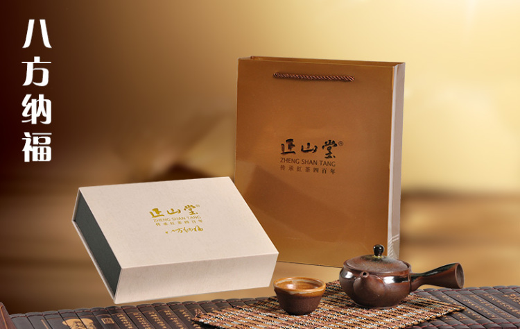 正山堂八方纳福65克品鉴红茶礼,金骏眉,银骏眉,百年老枞,妃子笑,水底香,野茶,骏眉红,皇家红茶,8款红茶集锦,倾情呈现。八方纳福特制礼盒,集经典于一阙,容天地之大成,容纳正山堂近十年红茶研制代表作品,非凡尽享。正山堂红茶世家,红茶品牌,承载四百年红茶厚积之韵,磨砺锤炼,2005年创制金骏眉,开启红茶先河。八方纳福,正山堂精髓集成之作,骏眉臻品,诚意之选。