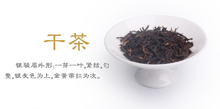 - 【主要特征】:银骏眉外形:一芽一叶,紧结,均整,银灰色为上,金黄带红为次。香气:清爽,如蜜糖。 汤色:橙黄、清澈、明亮为上;红、浊、暗为次。滋味:清爽、醇厚、甘甜,耐久泡。叶底:明亮,古铜色为上,红褐色为次。