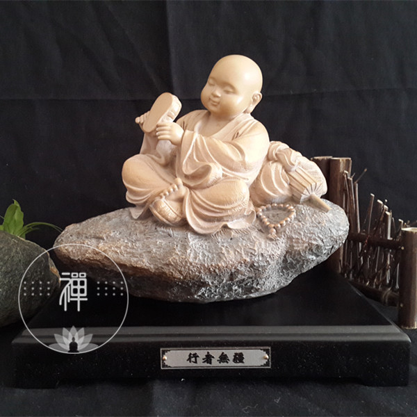 台湾铁丸石 工艺石雕人物摆件 行者无疆沙弥